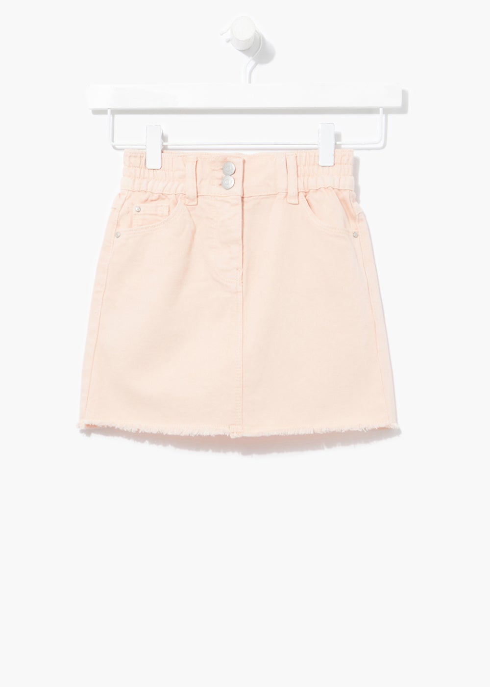 Swap her jeans for an on-trend denim skirt this season. This stylish coral design offers a frayed hem for a cool